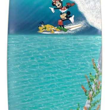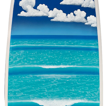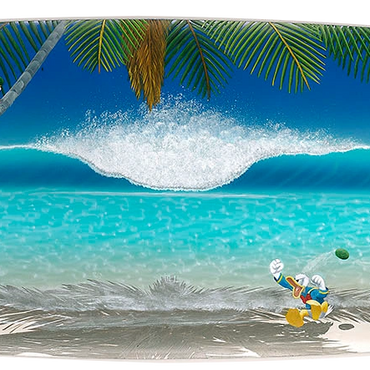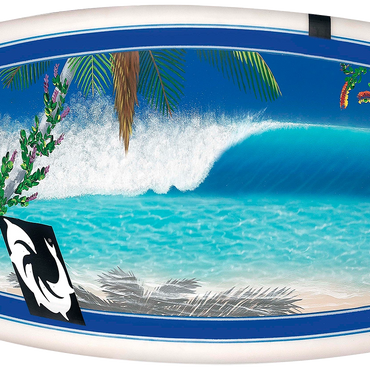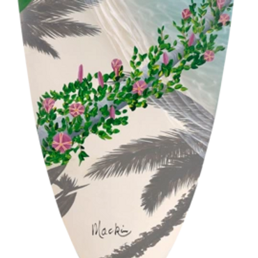 Mackin started painting surfboards for the National Kidney Foundation of Florida in 1994. The first one was signed by Kelly Slater, world champion surfer, and musician Jimmy Buffett and auctioned off for $10,000. After several years, Mackin thought these would be popular as fine art pieces in the galleries. He researched many surfboard manufactures in Florida and found that the highest quality surfboards are made at the factory of Pro Design Glass in Rockledge, Florida. Pro Design shapes, fiberglasses, and fine sands the boards. Boards are then sent to Mackin's studio where the images are painted, then shipped back to the factory for several coats of gloss resin, fine sanding, and polishing for the finishing touch. Currently, Dan has used the surfboard as his canvas to create his beautiful scenes on over 400 commissioned boards.